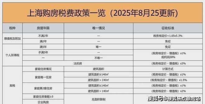 三、上海2025年8月最新购房税费政策