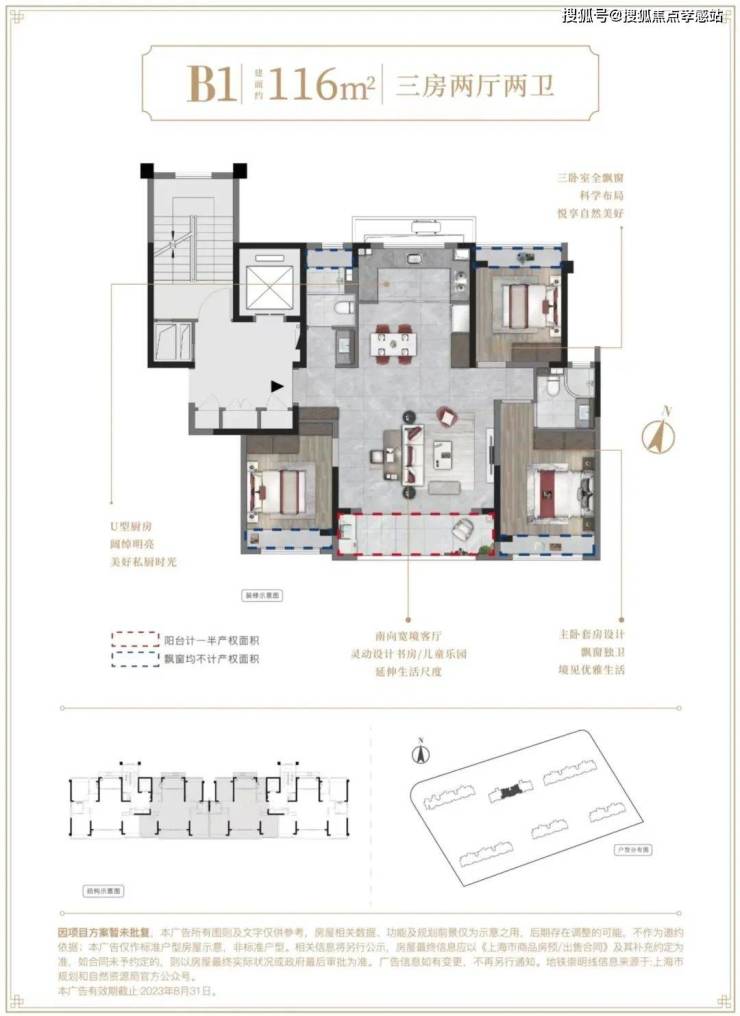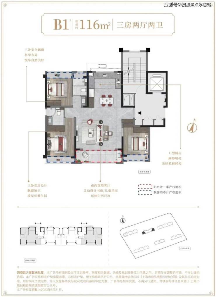 建面约116㎡3房2厅2卫▼