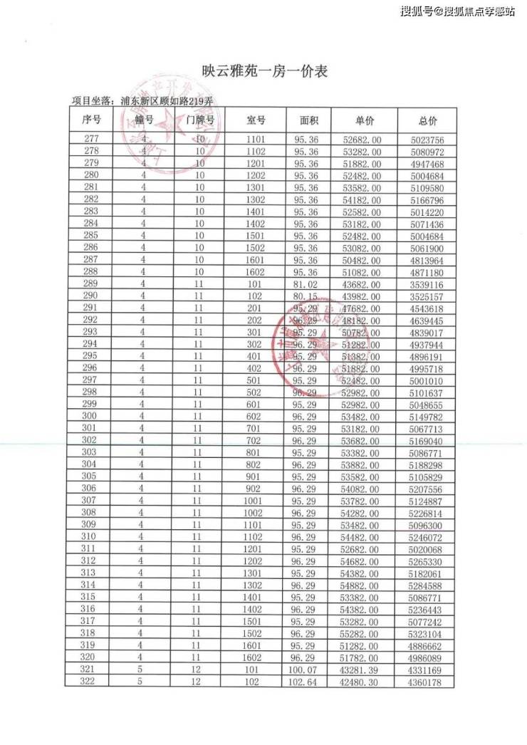 项目一房一价表▼