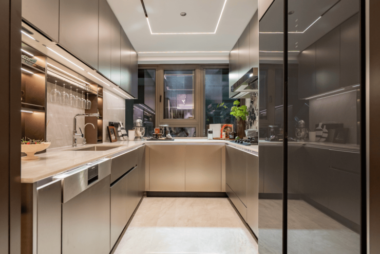 项目以“静奢”为核心,建筑上用铝板与玻璃幕墙构建美学天际线,最大化引景入室。