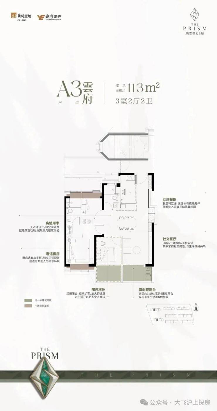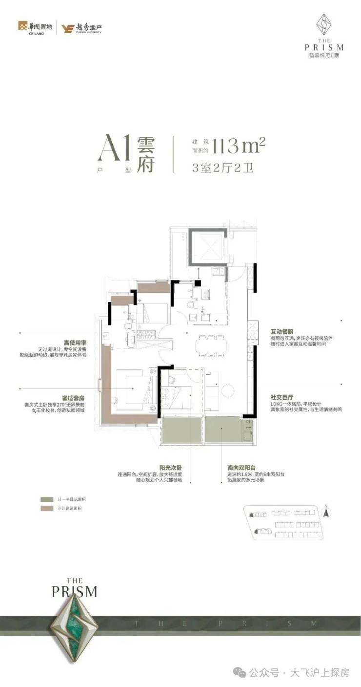 上叠 :L形客厅露台+客厅落 地窗+房间大窗大飘窗+顶楼星空露台+北入户花园。