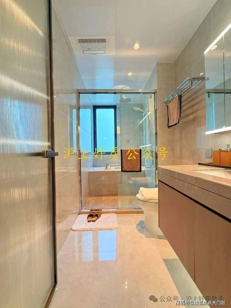另外,一般百平米主卫淋浴房都是钻石型的,但项目是“一字型”的。 “一字型”相比“钻石型”,洗澡空间更大,哪怕带着小朋友也不用挤得“转圈圈”,舒适度提高了不止一点点。
