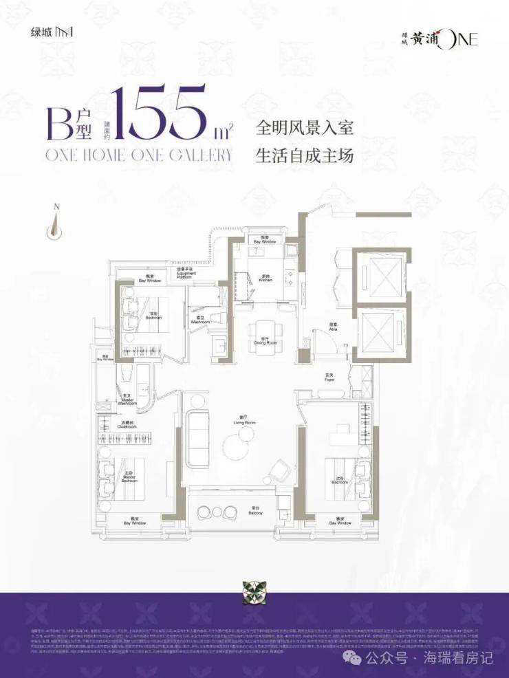 建面约155-193㎡产品,室内约3.15米层高,采用两梯两户的设计,尽显尊贵气度!