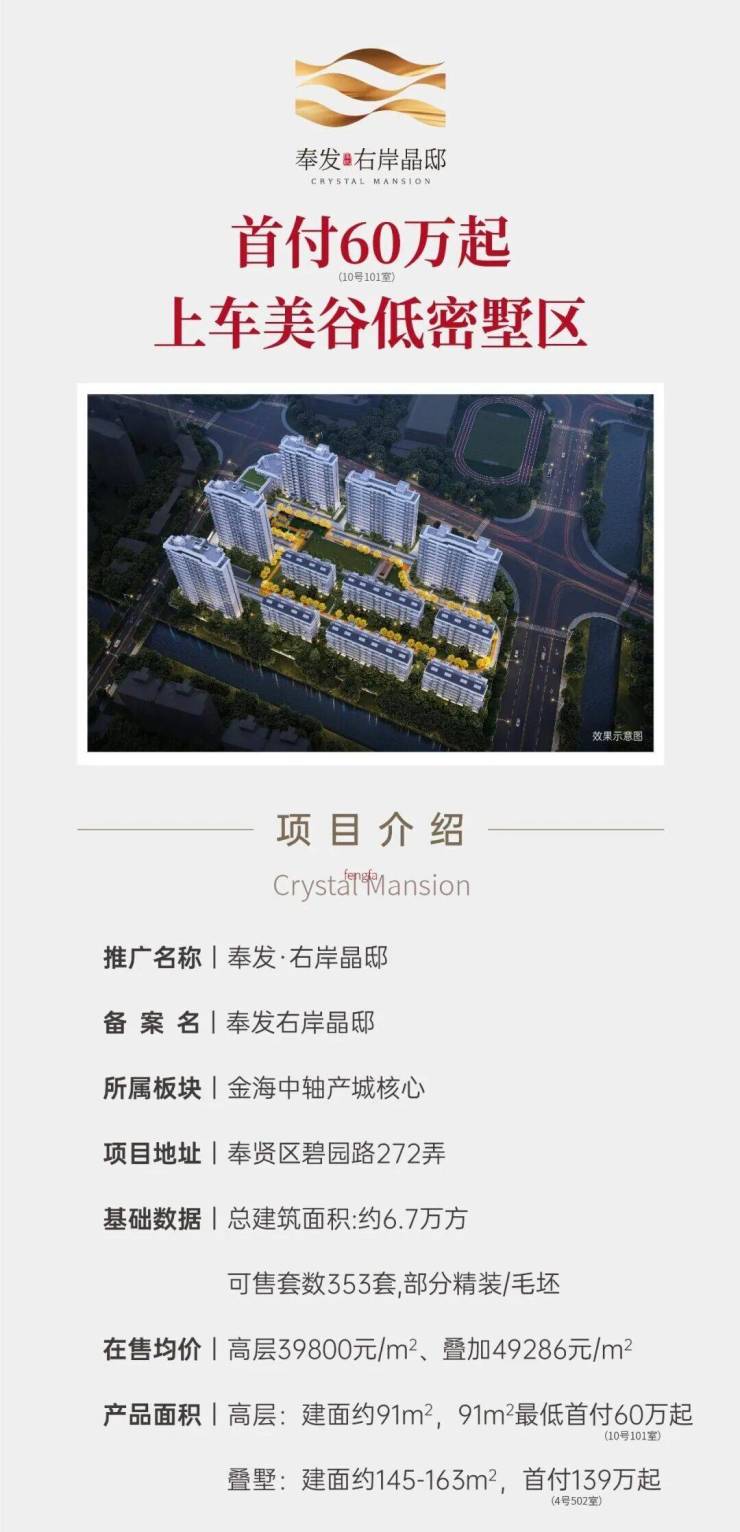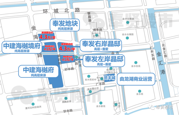 目前16单元最高联动价为4.3万/平,其中奉发右岸晶邸项目为高低配,即高层+叠墅,高层均价预计将低于4.2万/平。