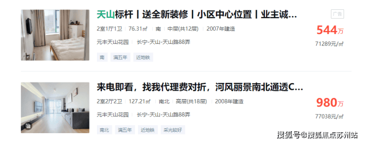 项目旁边就是元丰天山花园,根据安居客数据显示,项目目前的挂牌价在7-8万左右.当然了,作为一个07年的老小区,这个价格是偏低的。