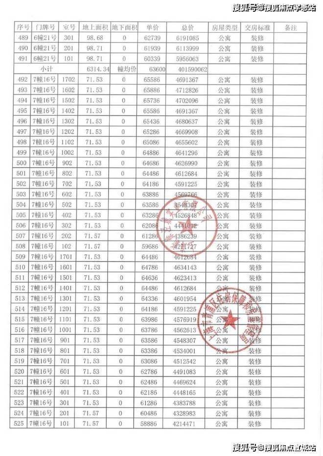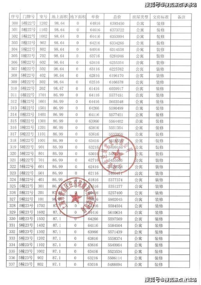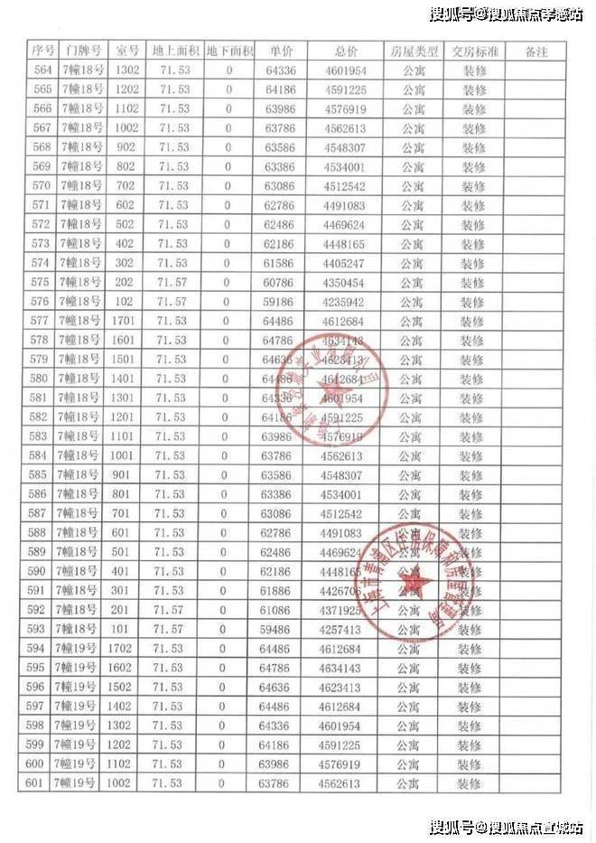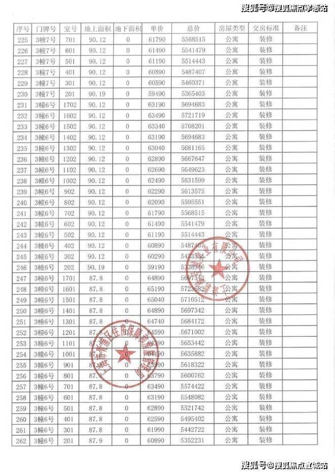 以下为项目完整一房一价表