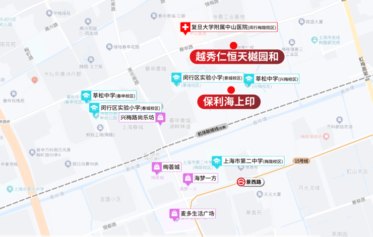 其次是教育,闵行实验小学和莘松中学是闵行公办的优质学校,与保利海上印几乎是门对门的距离。