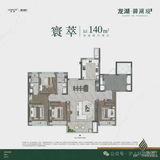 约 140 ㎡超配四房洋房,奉贤龙湖御湖境售楼处电话☎:400-8787-740【预约☎】奢阔双厅南北通透,还可改造成约8m巨幕宽厅,