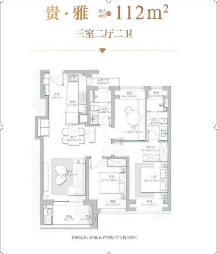 建面约112㎡三房两厅两卫