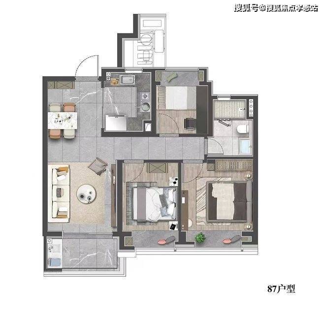 更重要的是,3房的设计保证了从二人世界到三代同堂的全生命周期需求。
