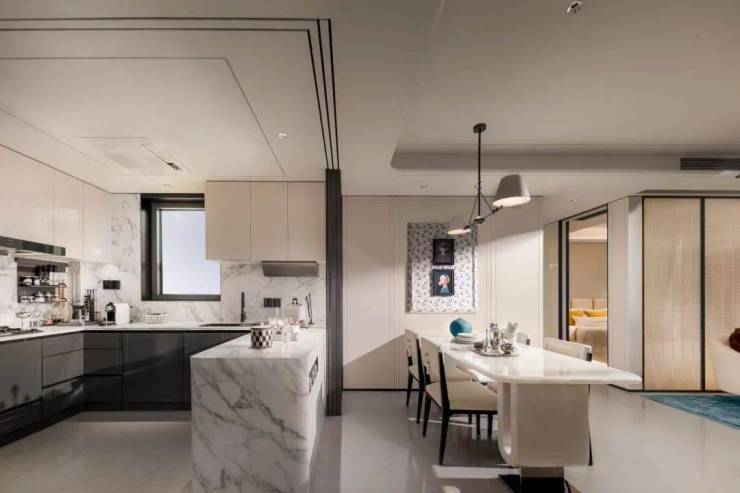 层排水技术消除水流声、静音空调及门底密封条等,结合中央排烟系统进一步降低厨房噪音,实现全屋静谧。