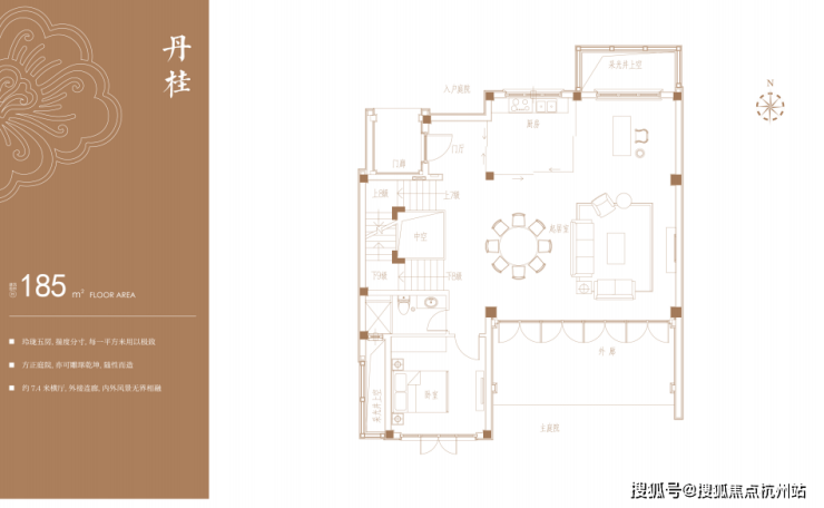 房屋实际可用面积要比户型图标注面积大一些,以“丹桂”户型为例,户型图标注的建筑面积为185m²,但是层高最高处可达到9.9米,未来完全可以搭建二层,搭建后,地上使用面积可以达到约280m²左右;