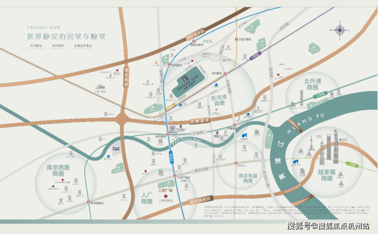 ● 一横:南面北横通道,速通中山公园、虹桥、北外滩、东外滩、南京西路等区域;