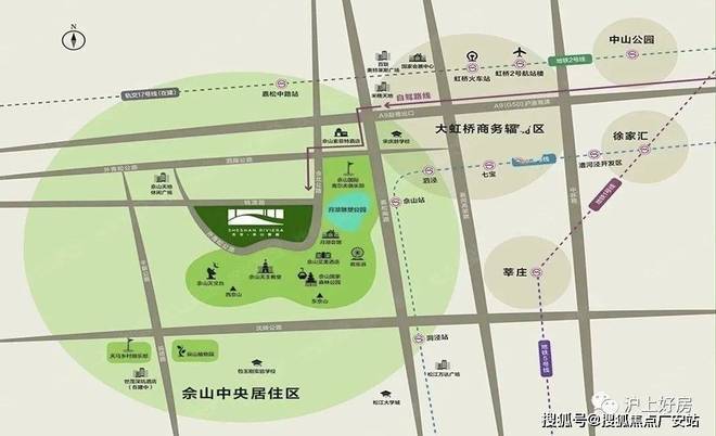 驾车路线:延安高架-沪渝高速-赵巷出口沈海高速-沈砖公路-外青松公路地铁9号线佘山站距离项目3.5公里