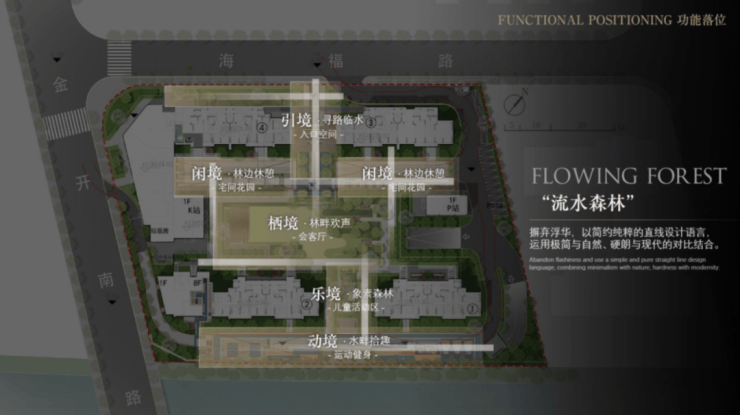 五大空间,景观由北向南,通过“一步一景”的设计手法,打造现代居住景观多维渗透式的人居体验。