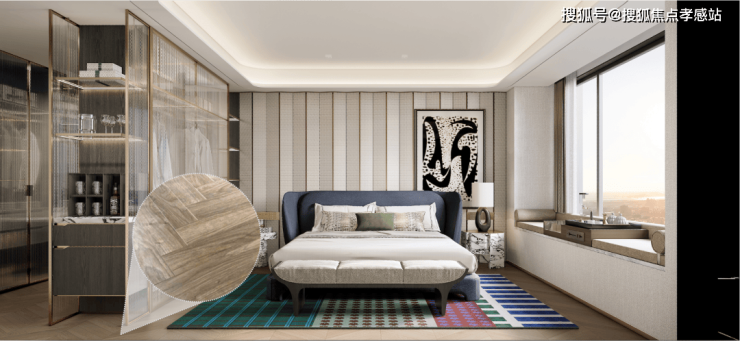 人字拼木地板,彰显室内设计的细腻度、颗粒感。