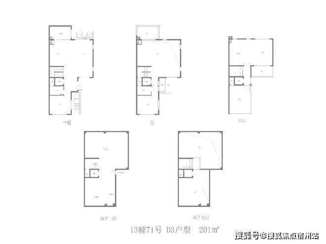 建面约157-176㎡3房,约202-205㎡4房的联排