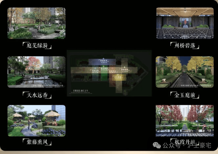 项目园林对轴线的运用同样出彩,堪称神来之笔的“双轴六境”,由“礼序归家轴+景观漫步轴”纵横交织,融在地文化,以“非遗”竹编形制,铺陈园林步道,同步淬取“州桥壁落”、“紫藤熏风”、“天水远香”等嘉定古今6景,提炼细节元素及专属色系,营造主题园林空间。