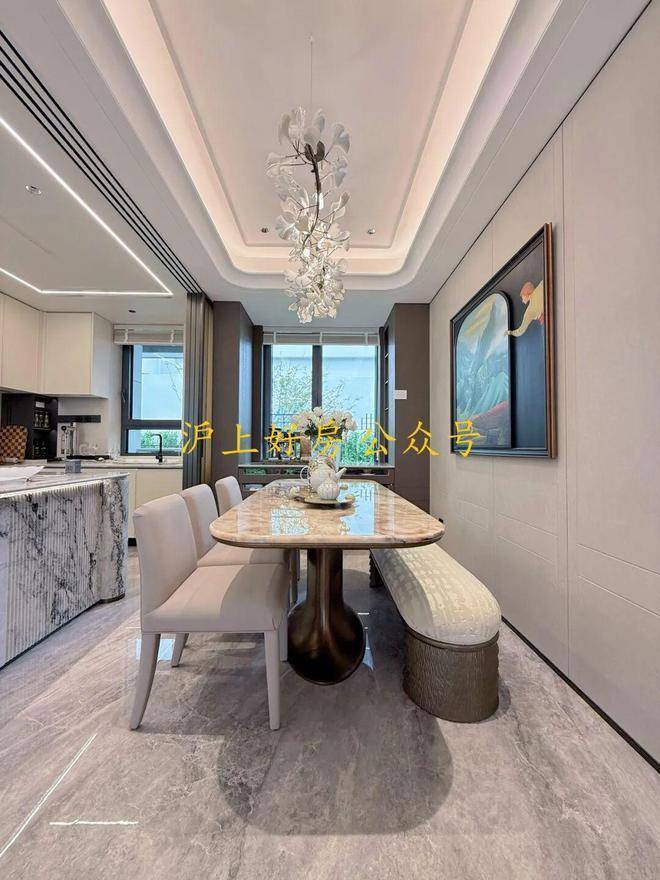 不计成本打造大量定制化米黄色石材饰面、奢玉、奢石搭配海派金属的装饰,细节与调性堪称板块标杆!