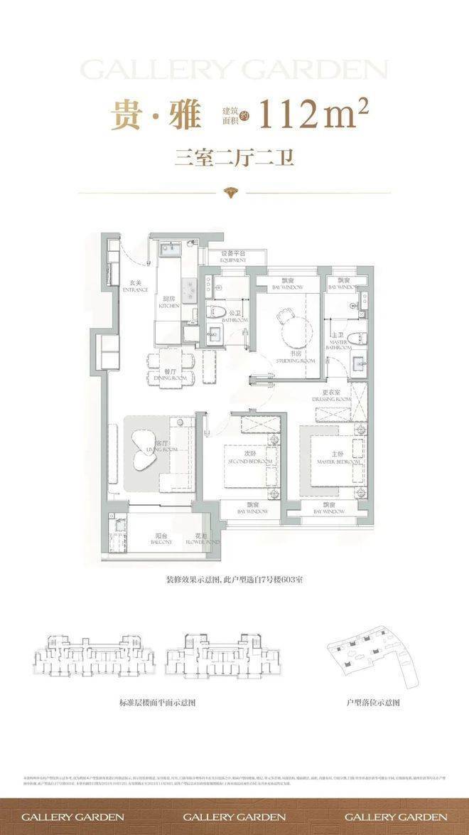 建面约112㎡3房2厅2卫户型