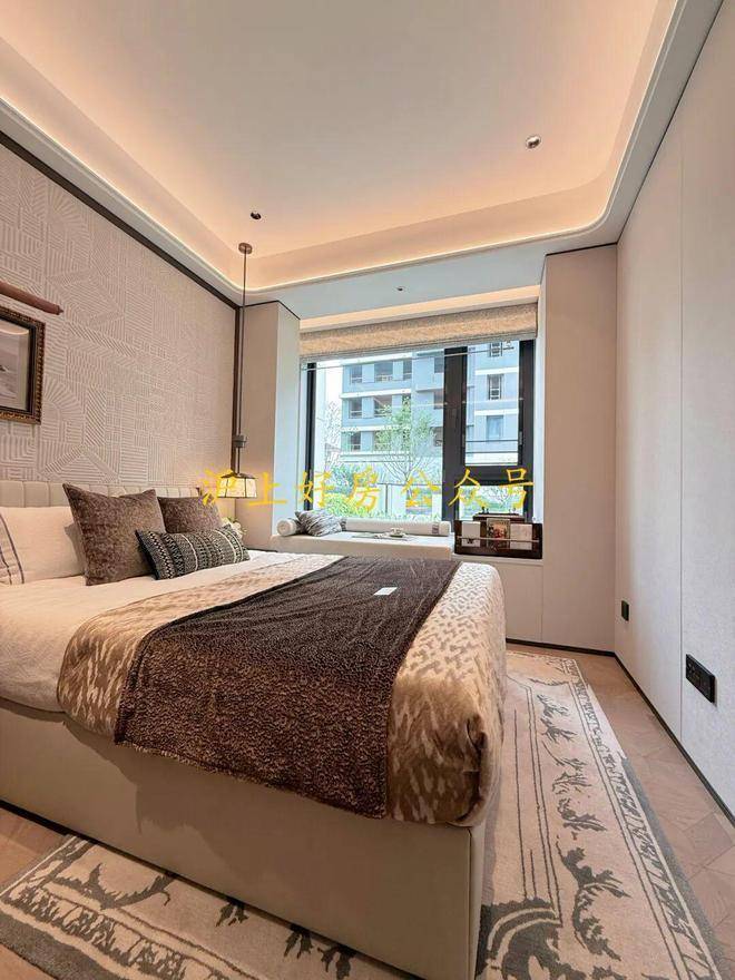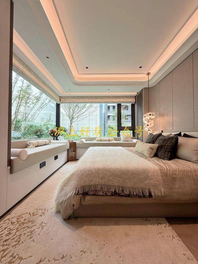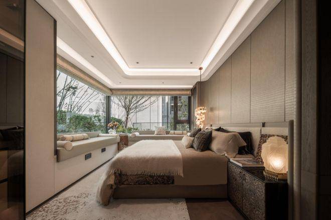 主卧约270°L形飘窗设计,将窗外的美景尽收眼底,注重美观的同时,也兼顾了实用性与舒适性,让业主在繁忙的生活中也能享受到宁静与安逸。