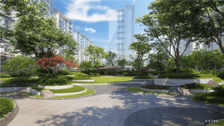 项目以“两轴、一环、双客厅、双乐园” 营造艺术度假体验式社区。结合“七大景观亮点”打造移步异景,体验景观与生活交融之趣。