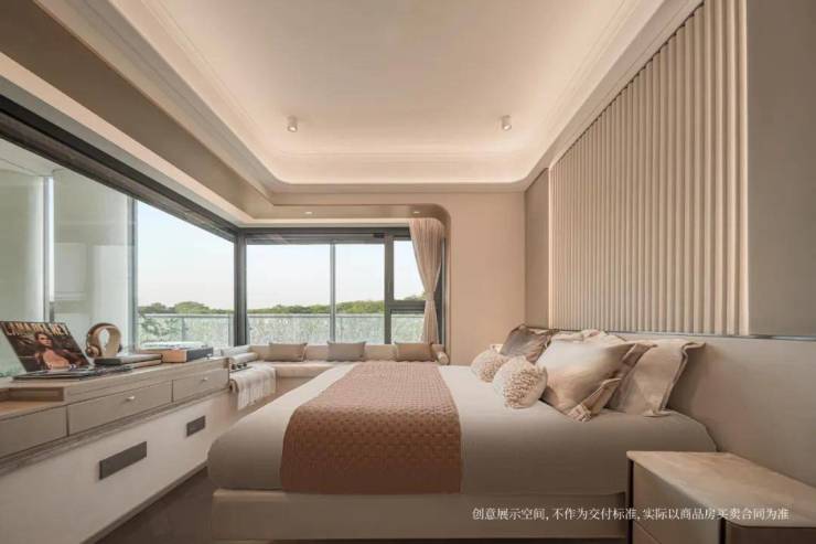 如果是边套的主卧,还会有一个约270°的转角飘窗,尺度感和实用性更上一层楼。