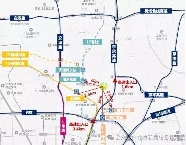 四轨:13号线北苑站、14号线善各庄站、15号线崔各庄站、17号线勇士营站。