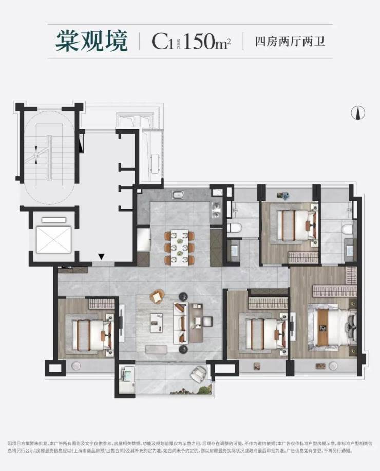 如果家庭有二孩或者三代同堂需要的,那建面约150㎡的四房大平层一定要优先加入您的“购物车”,标准的“大面宽短进深”的黄金户型格局,直接让人竖起大拇指: