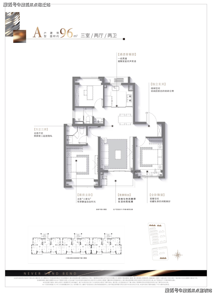 建筑面积约96㎡和建筑面积约100㎡三房户型,呈现更契合松江改善家庭品质生活需求的人居。