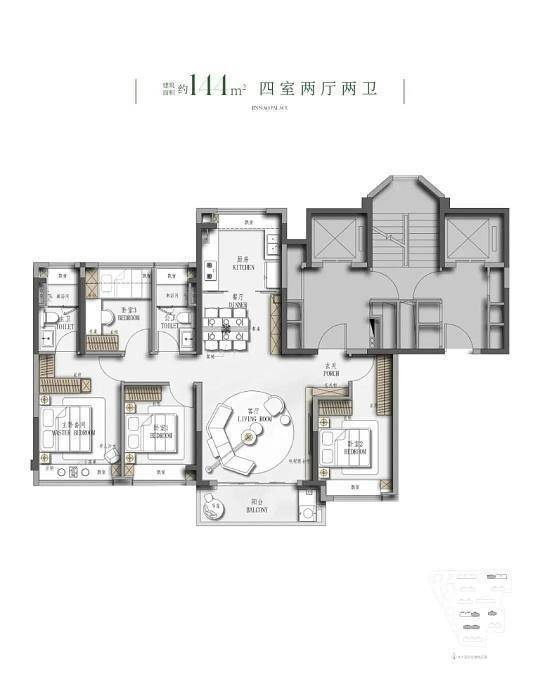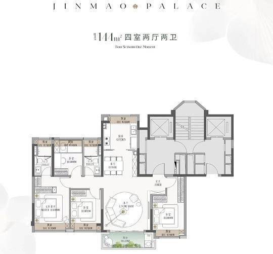 项目主力户型为建面约114-190㎡三至四房,三开间朝南,得房率高达81%,空间布局紧凑实用。其中,190㎡户型配备6.2米横厅与270°转角阳台,视野开阔,采光充足。全屋精装选用德国西门子厨具、美国科勒卫浴、日本大金中央空调等国际一线品牌,搭配精细化施工工艺,确保每一套房子都经得起时间考验。