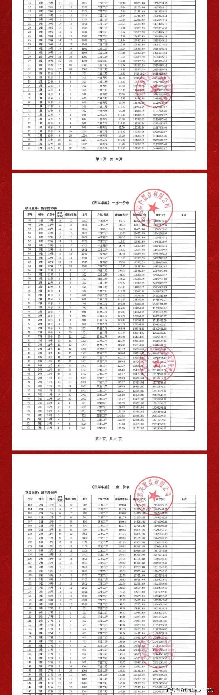 项目一房一价表▼