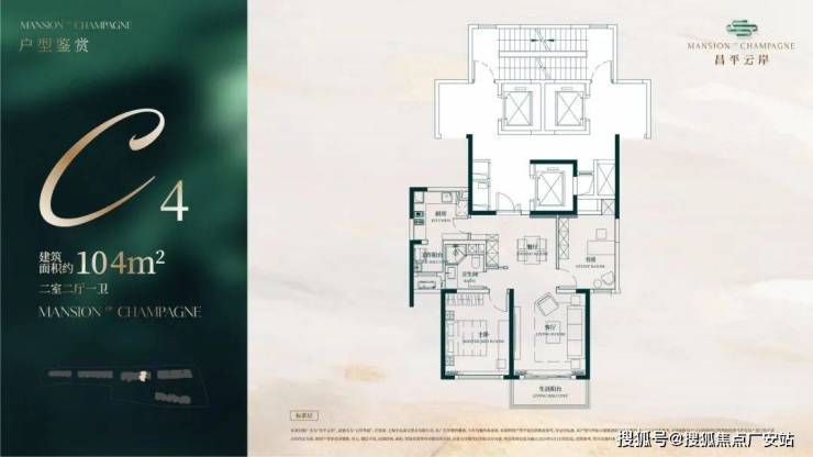建面约104㎡2房2厅1卫户型▼