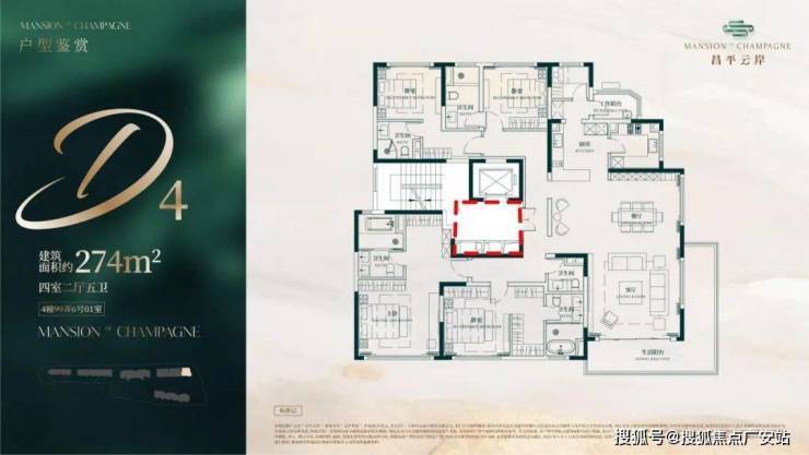 建面约274㎡4房2厅5卫户型▼
