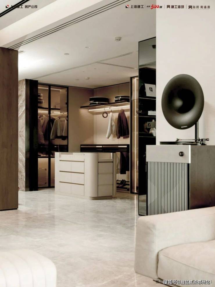 观家新房注意到,在外立面上,项目与外滩万国建筑博览群的建筑风格一脉相承,为ARTDECO风格,三段式立面,塑造出有立体感的韵律天际线。材质方面不计成本采用古铜色、深灰色+铝板、镜面铝板的完美搭配,再镶嵌竖向线条和立面层次,威仪肃穆。