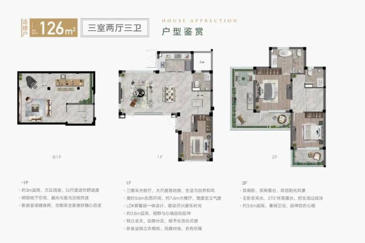 首层约3.6米的尊享层高,通过全方位的视野,将别墅产品的独特气质展现得淋漓尽致。