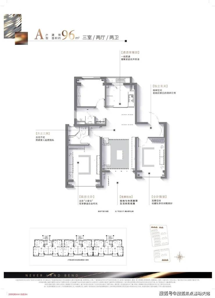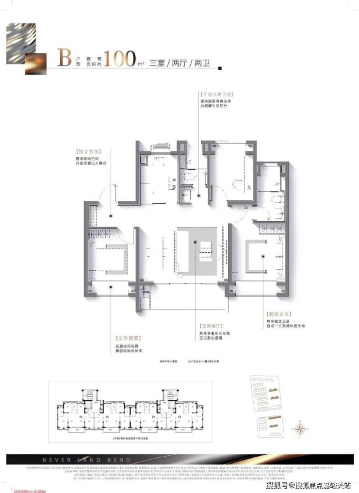 建面约100㎡宽厅三房,改善家庭至优选: 在南向三开间的基础上,该户型“创新横向宽厅,营造百平米少有的客厅尺度“打造3.5南向面宽。