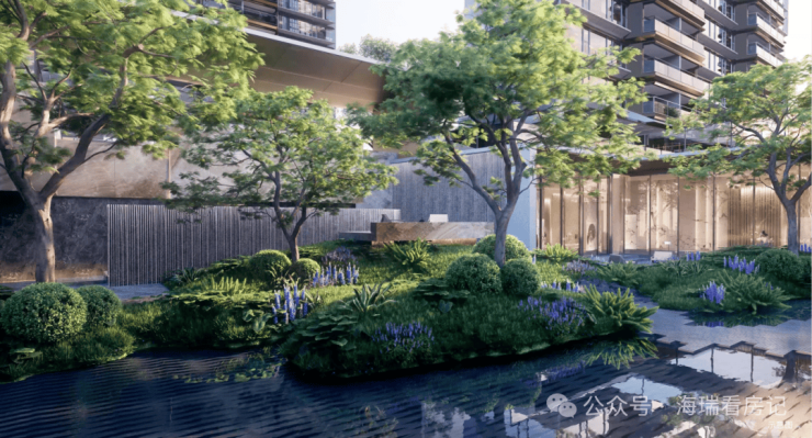 在社区景观层面,从新杨思POD中央公园汲取基因,社区内植入水晶丛林概念,汲取奢石点缀、翡翠铺陈、琉璃镶嵌等珠宝钻石设计理念,内部打造中央公园、生活街区等功能景观空间,营造有参与性、有归属感的水品秘境。