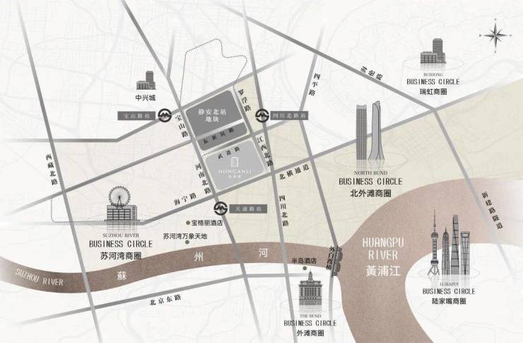 摩登生活的璀璨演绎:3公里范围内,汇聚苏河湾万象天地、北外滩商圈、瑞虹商圈、南京西路商圈、外滩商圈、陆家嘴商圈等,东南侧步行可达18街坊,西南侧在建安康苑、湾上综合体地块。