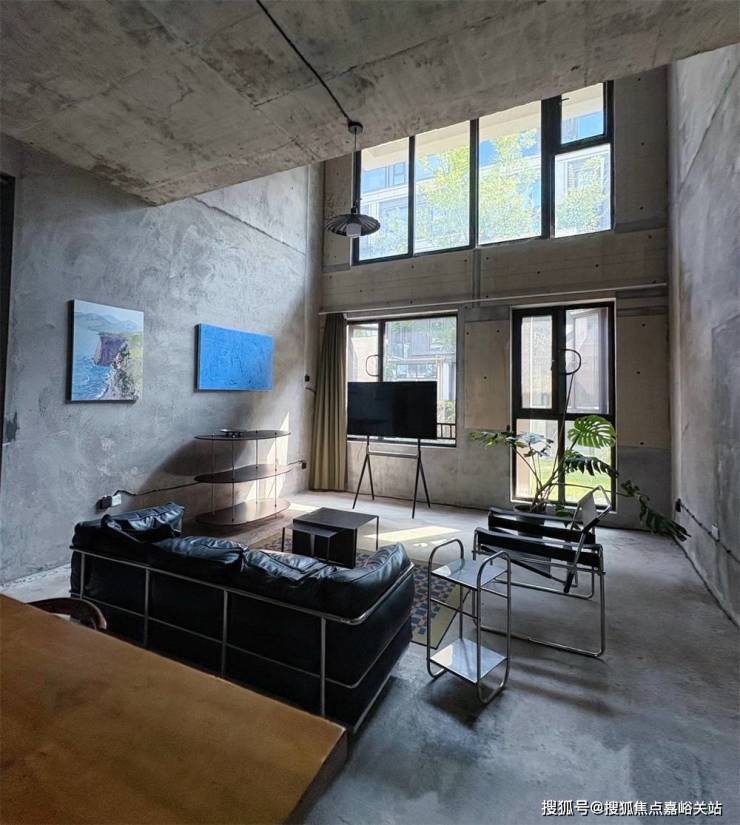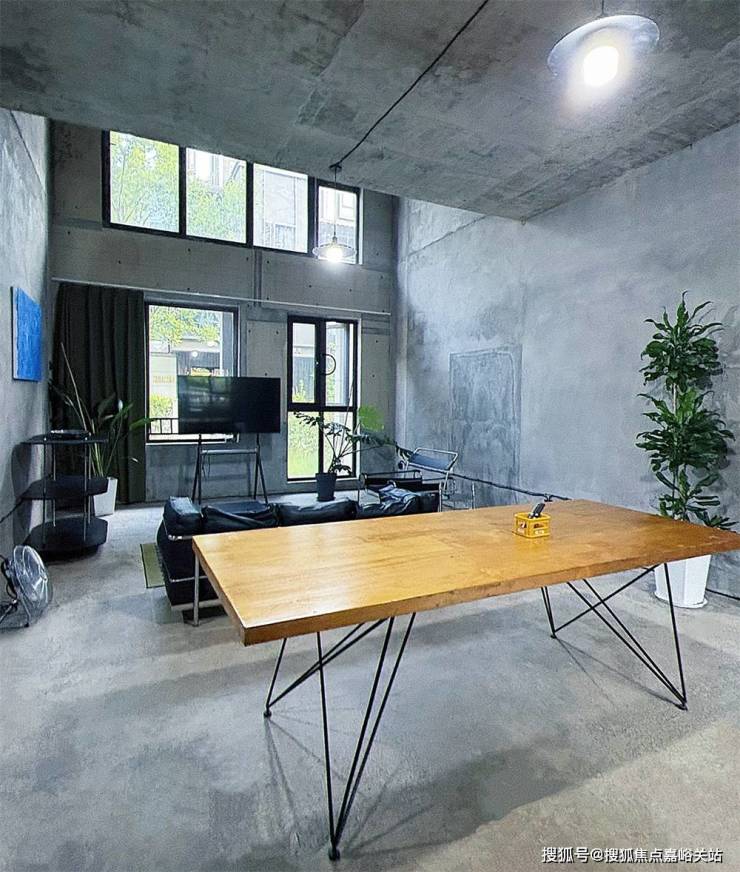 而从这里,也可以一览家中餐厅、客厅和头顶隔层空间的水泥毛坯风格,因为是复式,看起来还有种开扬宽敞的感觉。
