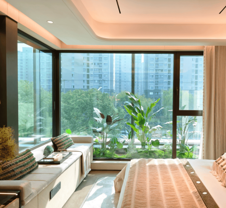 大华定制全屋智能家居系统,实现灯光、场景的一键智控,让科技隐于无形,服务于便捷生活。厨房集成 西门子厨电 ,卫浴空间选用 德国高仪 五金件与 唯宝 陶瓷。全系标配 “日立中央空调、地暖、迈迪龙新风” 三大件,构建恒温、恒湿、恒氧的居住环境。