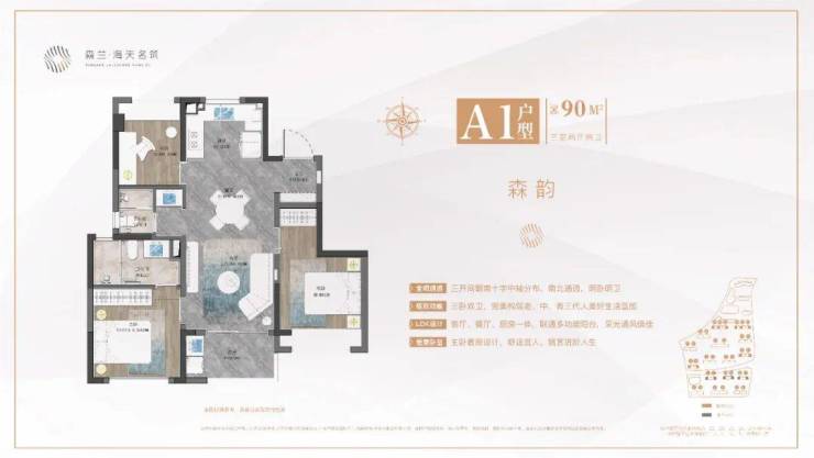 建面约90㎡样板间实拍⭐森兰海天名筑售楼处☎☎:400-8787-740⭐