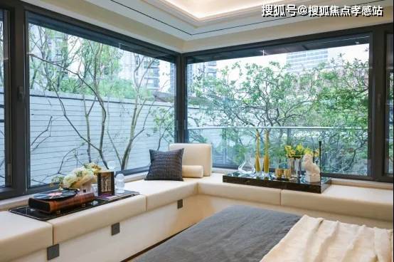 今年卖了最多套数的中环置地中心润府,似乎就是这股旋风的始作俑者。在其首批样板间开放时就做了这个设计,用玻璃窗+飘窗和落地玻璃窗替代卧室外墙,呈现出来的效果令人耳目一新。