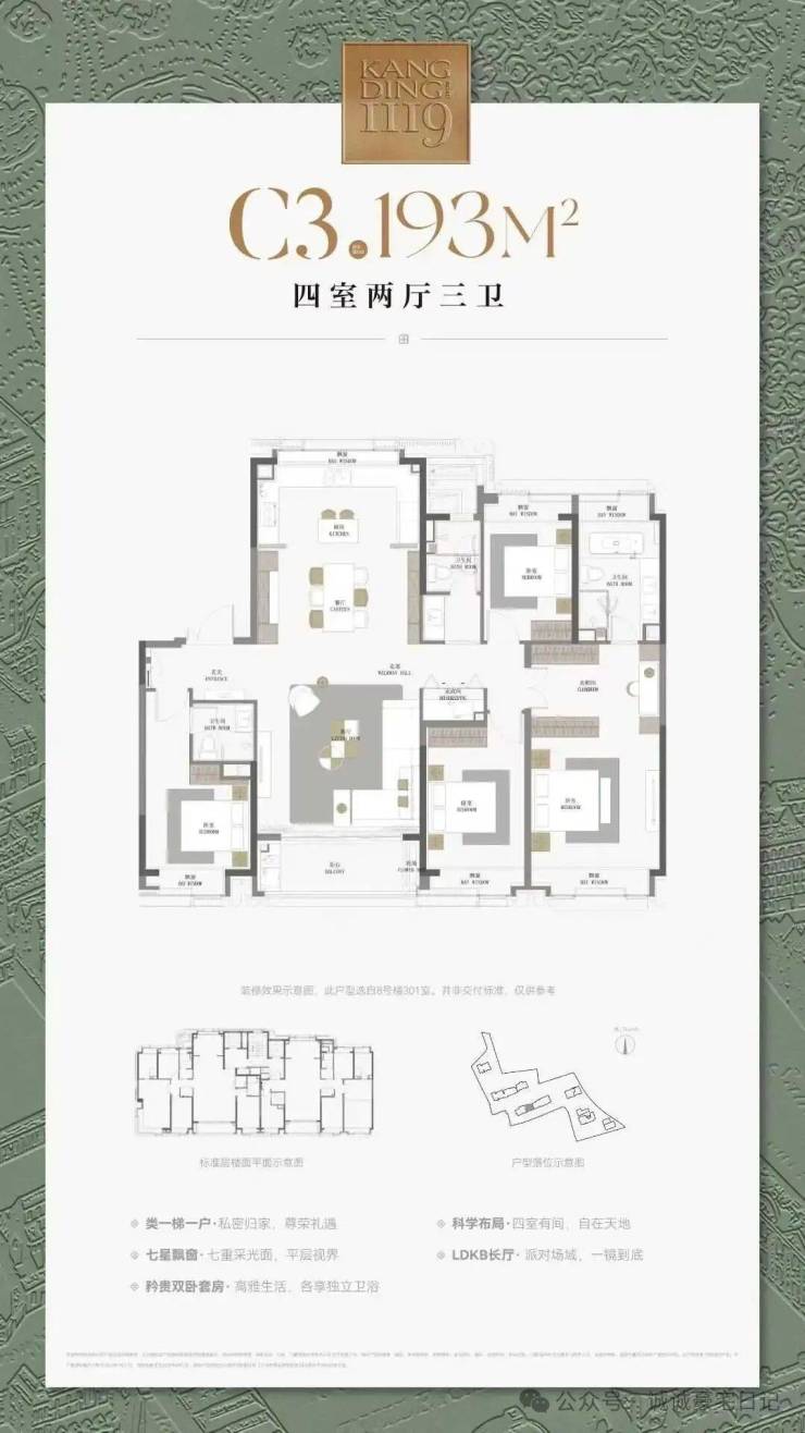 最新信息:康定壹拾玖第三批次184套房源认筹结束,目前还有少量房源,建面约120-238㎡3-4房,均价17.18万/㎡,可直接落位!