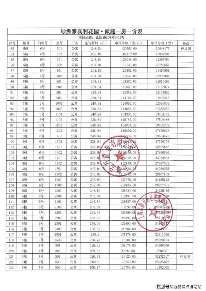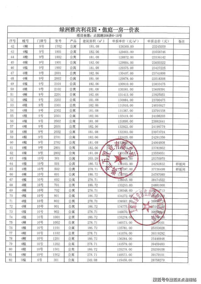 48、均价:即物业的平均销售价格,将本物业各套房子的销售价格相加之后的和除以各单位建筑面积的和数,即可得出每平方米的均价)。