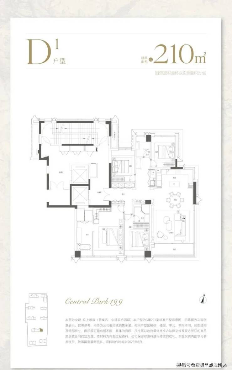建面约210㎡,分为中间套与边套产品: