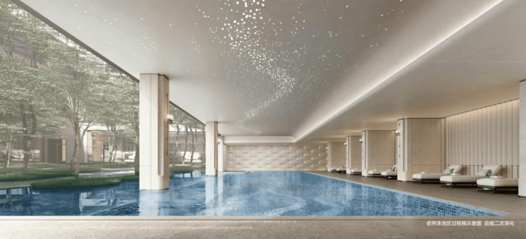 如今的上海,因为土地有限、能力有限、成本有限等原因,配会所的并不是很多。而招商中旅·观境不仅打造了一个足够体量的会所,更是在这个会所内,打造无边泳池、健身房、行政酒廊、私宴厅等功能空间。