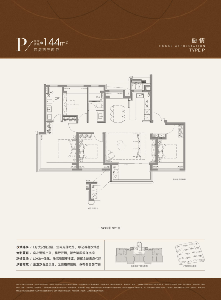 这么好的产品户型自然也不落下风,这次项目主推的约110㎡户型,以及144㎡,不仅适配全周期生活,且在细微之处包涵不少贴心设计。比如:全系宽厅设计、LDKB 布局、L 型转角飘窗、深 U 厨房,充分迎合当代家庭的生活习惯与居住需求。