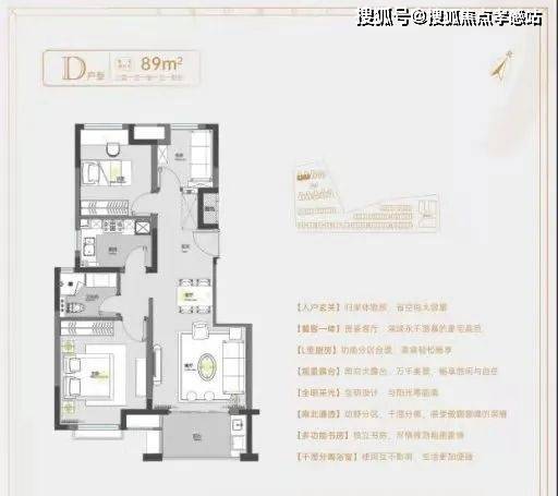 建面约78㎡2房1卫户型,做到了双开间朝南+南北通透+卧室带飘窗+动静分离,功能区划分、动线都非常清晰。