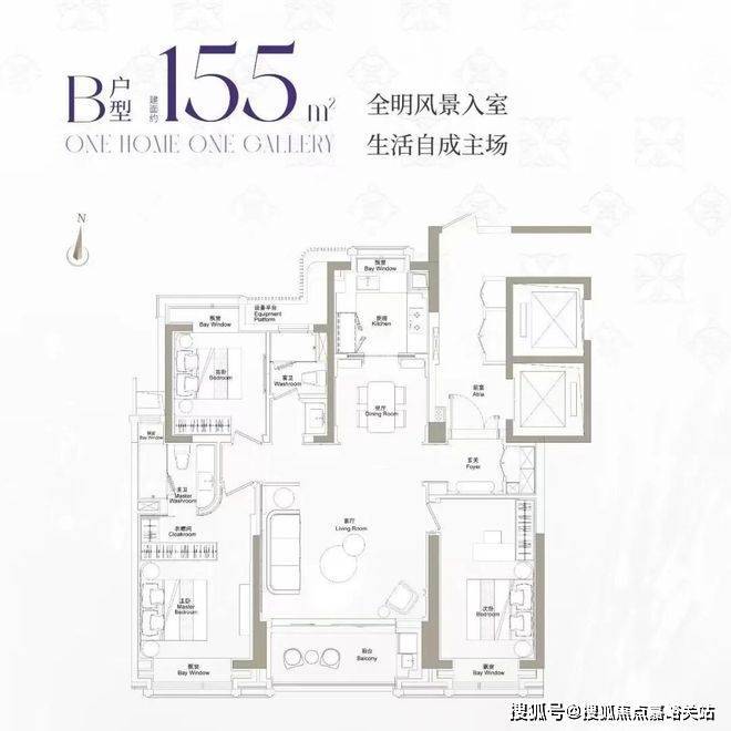 绿城·黄浦ONE售楼处电话:400-9966-940👈整体布局三开间朝南、南北通透,南向面宽约12米,中央区域为LDKB一体化设计的公共活动区,全明格局带来极佳的室内采光、通风与景观视野体验
